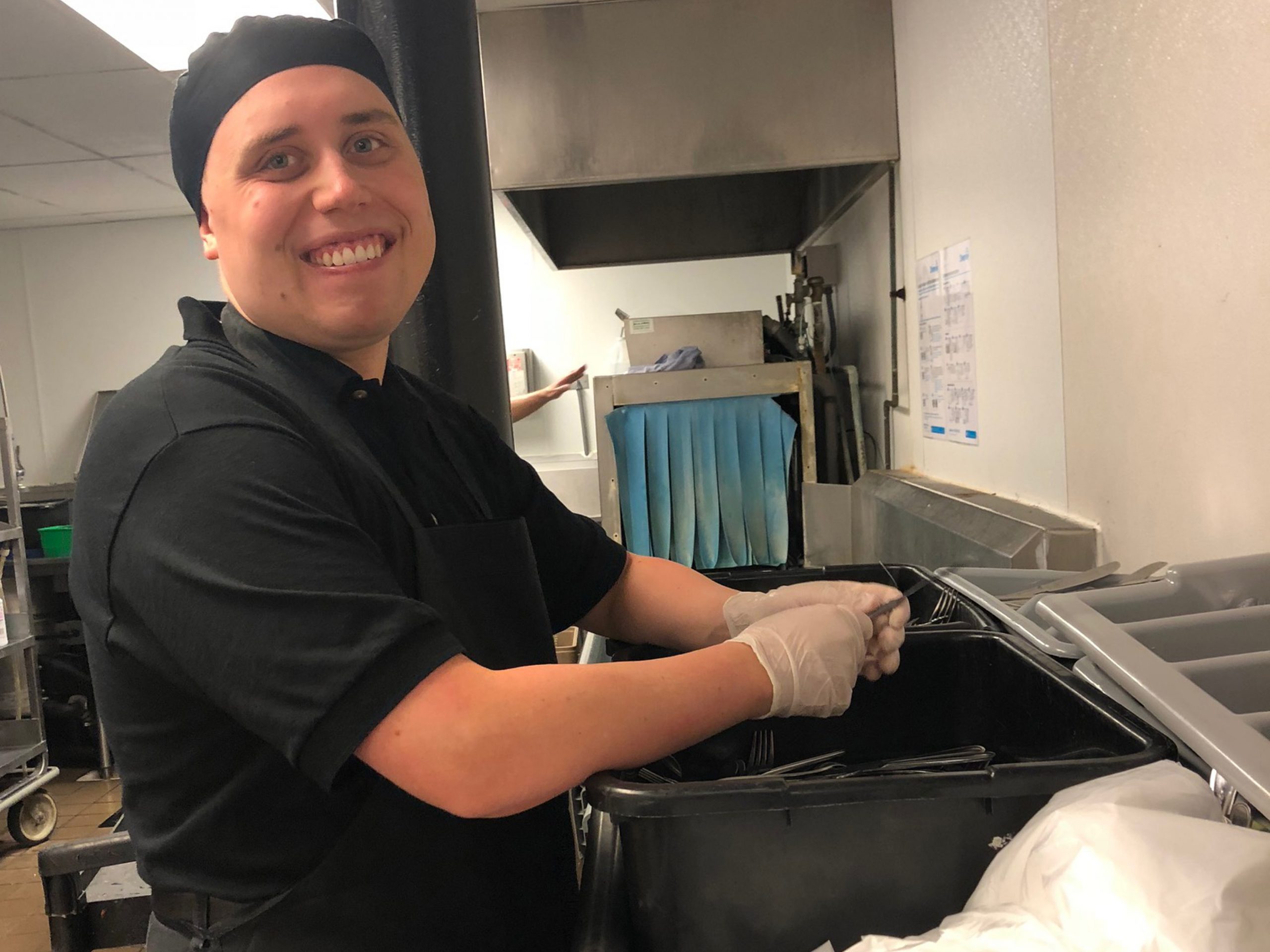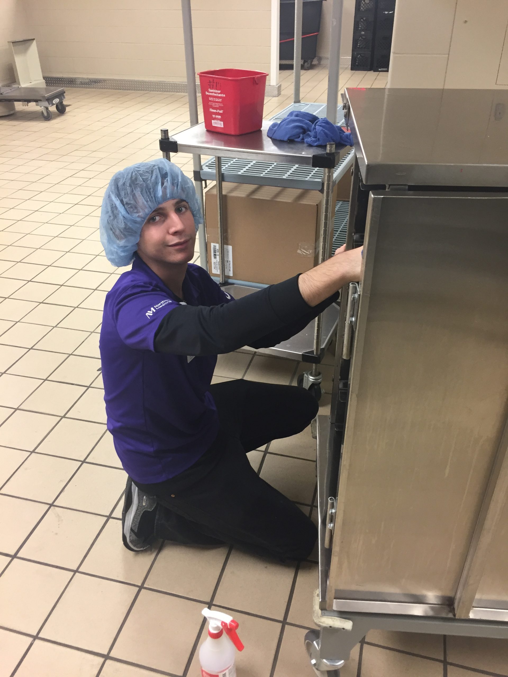Sean took the Project SEARCH program very seriously. During Sean’s first internship, Sean was a cart runner. Sean prided himself early on his speed, however, he needed to practice cart safety early on. It was great that he was fast, but he also needed to make sure he was being safe. This was especially important when Sean would approach corners in a fast manner. Sean was also frequently found texting on his phone during his first internship, and as a result, he would be coached on why this type of behavior while working was inappropriate & could potentially be harmful to others. Sean took this feedback from staff to heart & quickly changed his behavior. Sean’s ability to run carts in an effective & safe manner towards the end of his first internship allowed him to stand out to his manager, Vickie Yuskis. He was nicknamed “flash” early on by kitchen management due to his speed.
